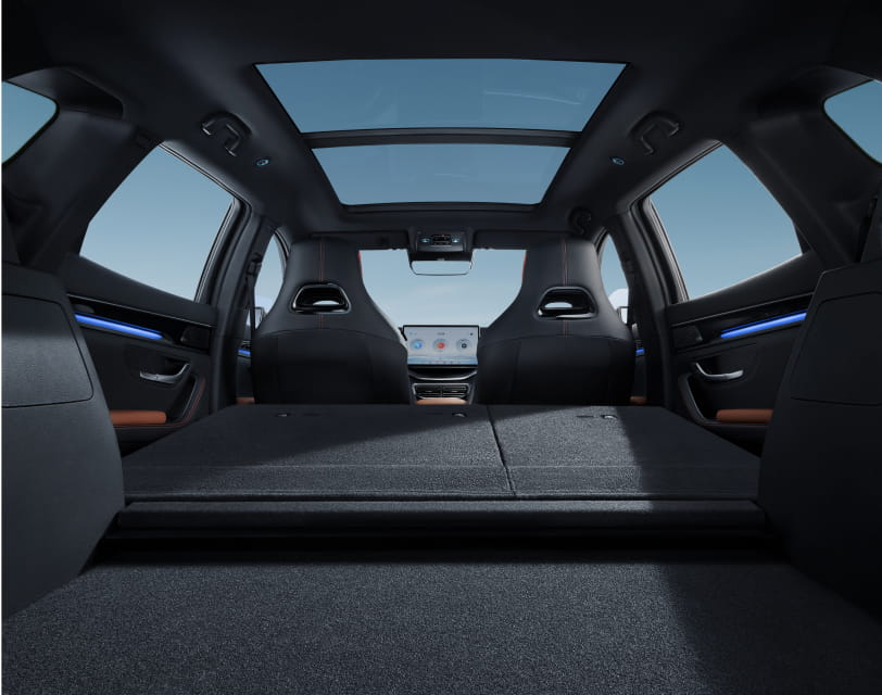 Zadní část vozu je navržena s důrazem na eleganci. Stylová zadní světla Matrix-LED se táhnou přes celou šířku vozu a okamžitě upoutají pozornost.